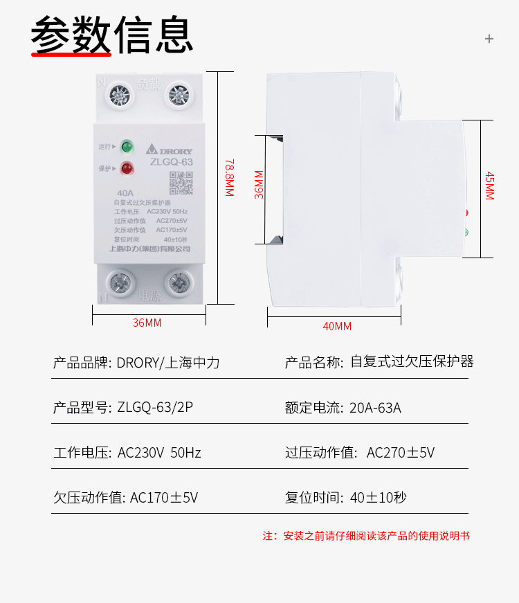 ZLGQ-63/2P 20A、25A、32A、40A、50A、63A自复式过欠压保护器(新款)