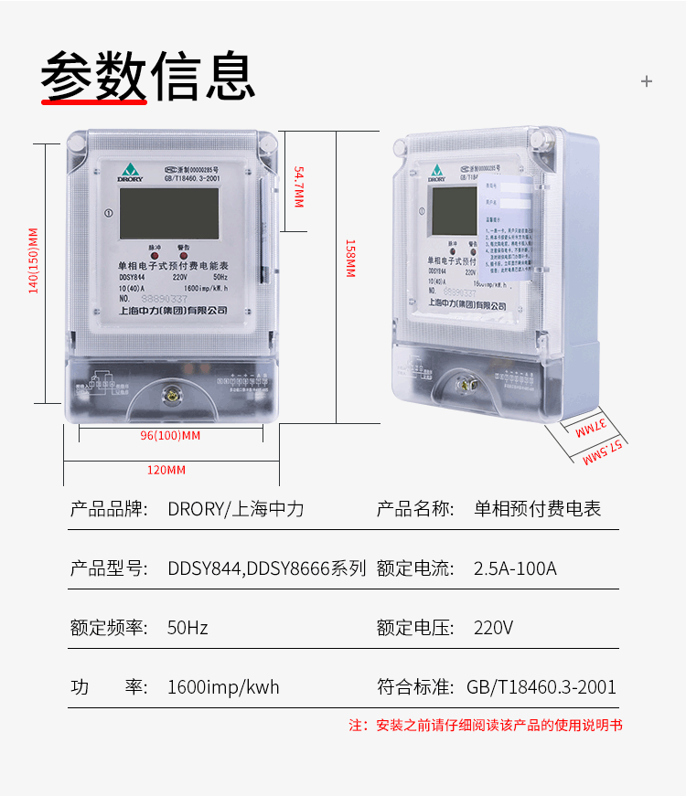 DDSY844型,DDSY8666型;2.5A~100A 单相预付费电表,IC快单相电子式