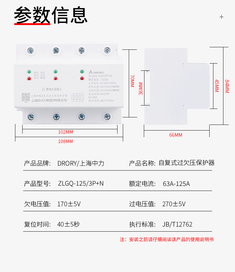 ZLGQ-80/2P 32A 40A 63A 80A 自复式过欠压保护器系列