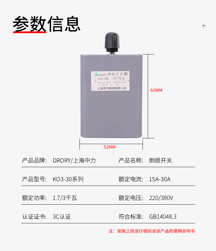 KO-3型倒顺开关30A单相电机 和面机正反转开关