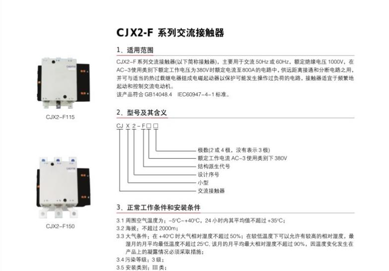 CJX2-F115~F780系列交流接触器CJX2-F系列 银触头