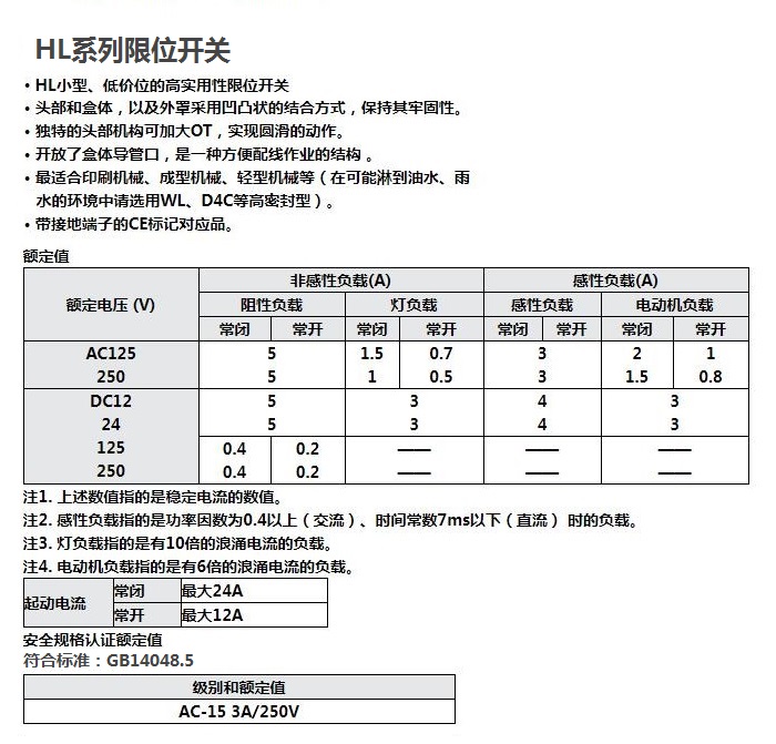 HL-5000 5030 5300 5100 5200 5300系列行程开关
