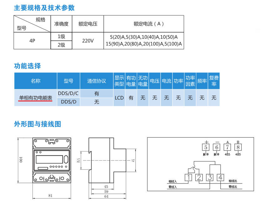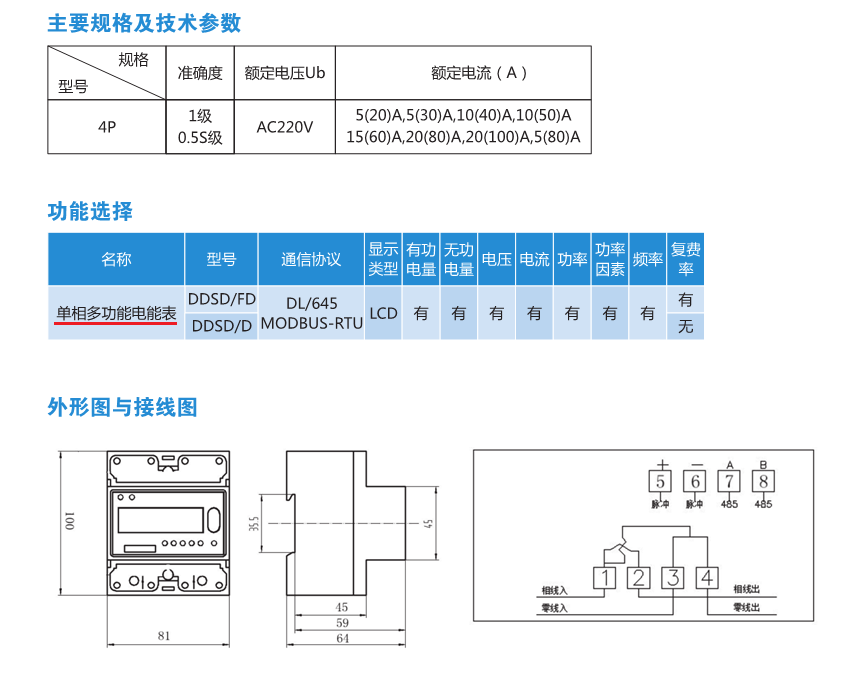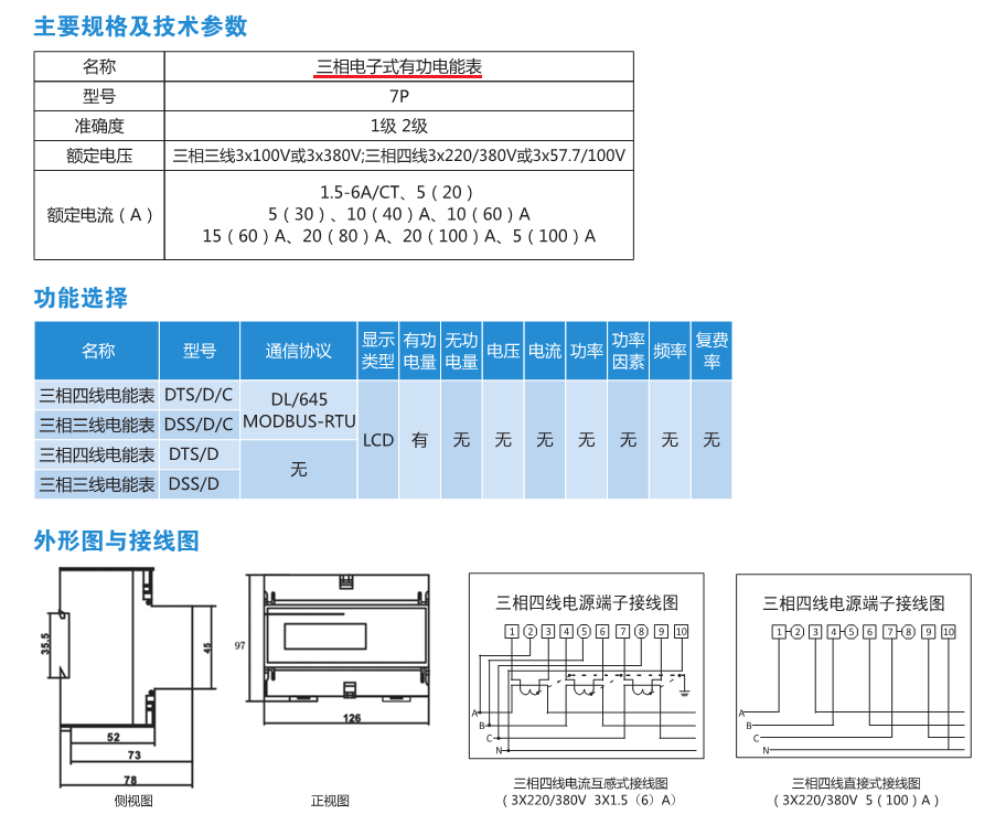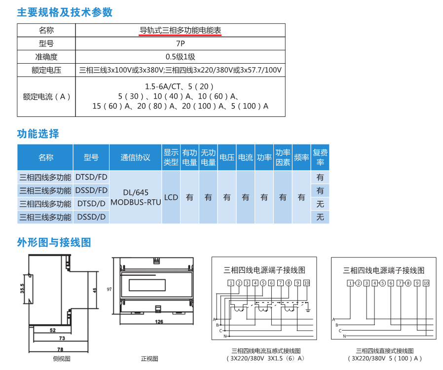 LCD液晶显示导轨式多功能/有功电能表单相/三相电表