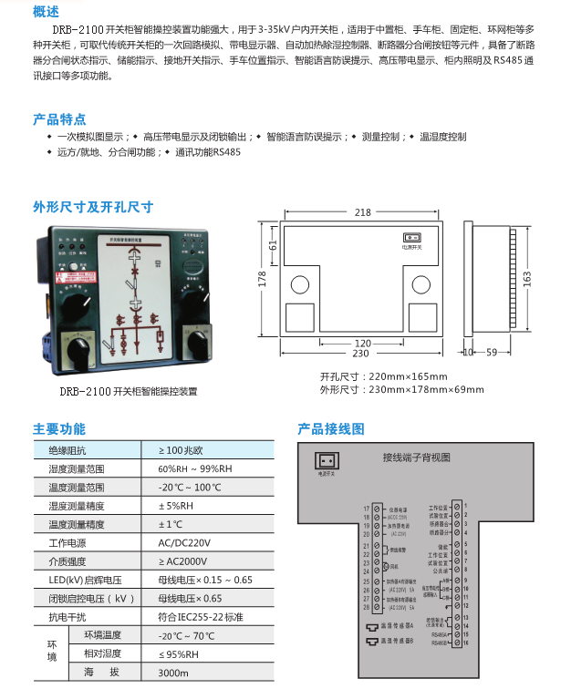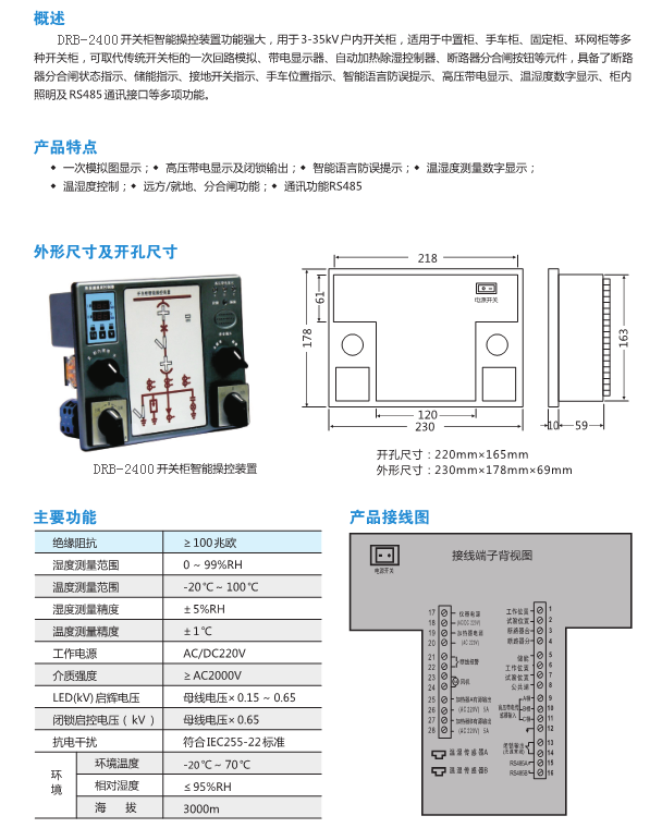 开关柜智能操控装置/高压带电显示/柜内照明/闭锁