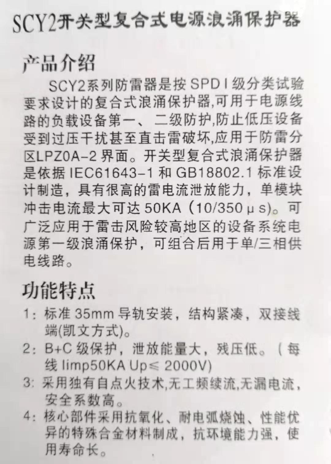 SCB(SPD)-12.5KA~50KA; 4P一级后备保护器