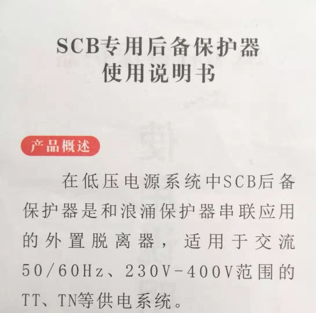 SPD后备保护器,SCB后备保护器 一级12.5~50KA;二级20~120KA 4P