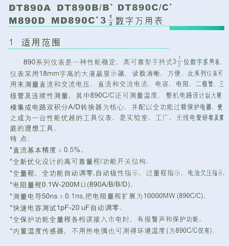 DT890A DT890B/B* DT890C/C* M890D MD890C*数字万用表
