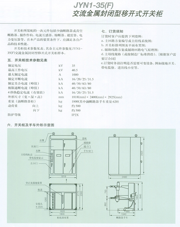 JYN1-35(F)交流金属封闭型移开式开关柜