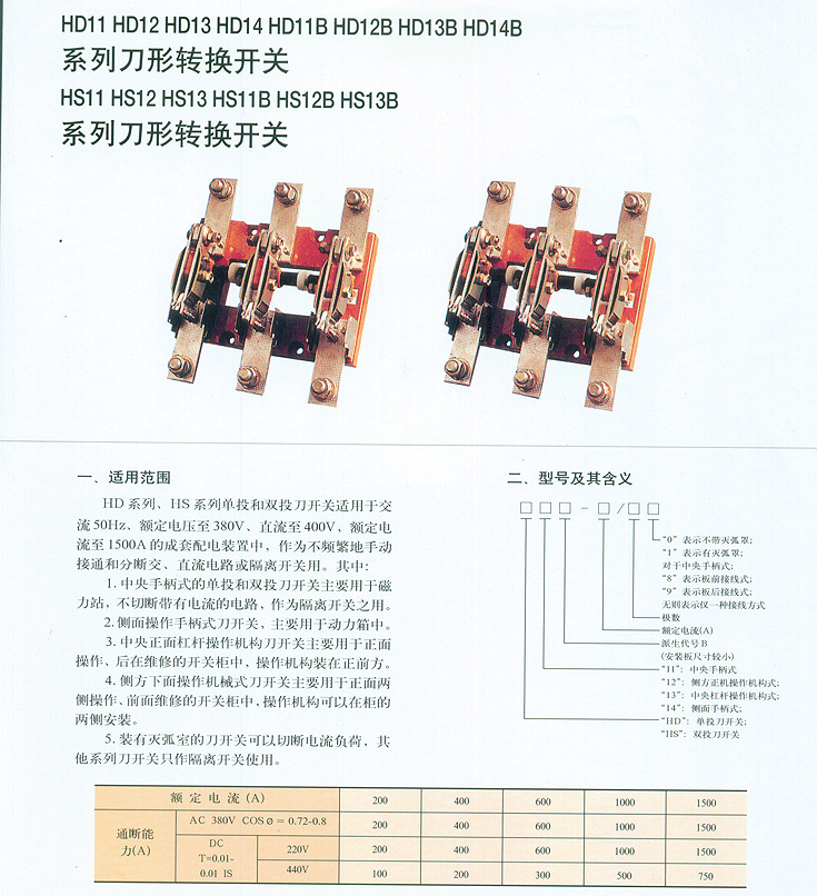 HD11HD12 HD13 HD14 系列刀形转换开关