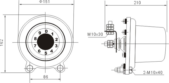 | 参照外型图进行安装。安装时,先将计数器用螺栓安装在避雷器底座附近,连接好接地母线,然后将高压出线端用螺栓和母线连接在避雷器绝缘底座上。 |