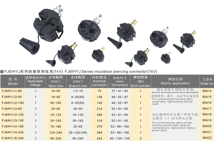 FJ6/HYJ系列绝缘穿刺线夹(1kV)