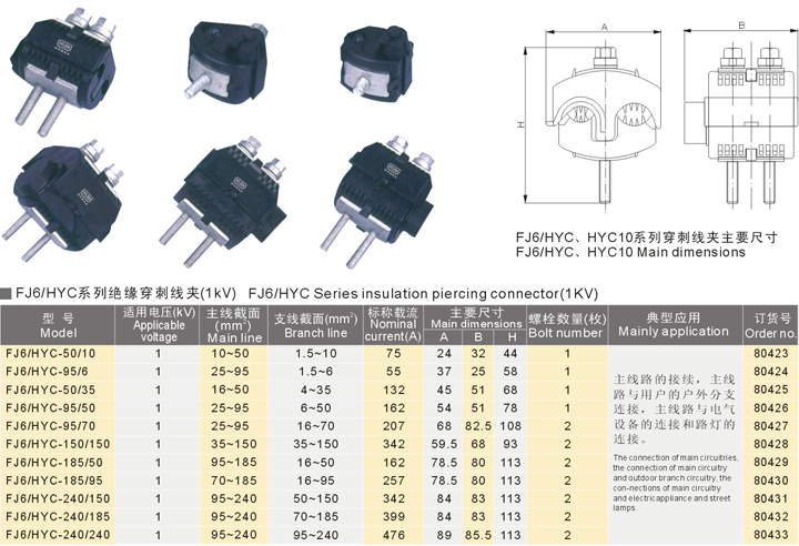 FJ6/HYC系列绝缘穿刺线夹(1kV)
