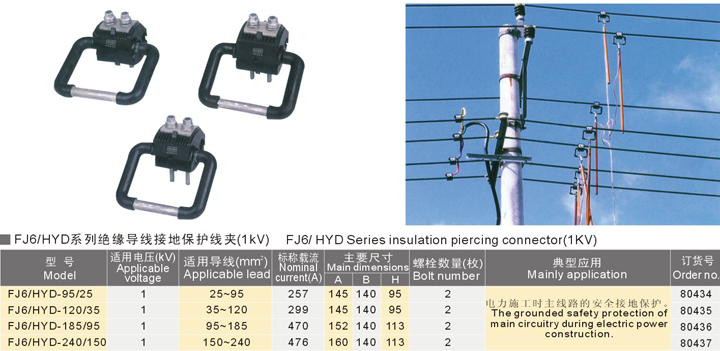 FJ6/HYC系列绝缘穿刺线夹(1kV)
