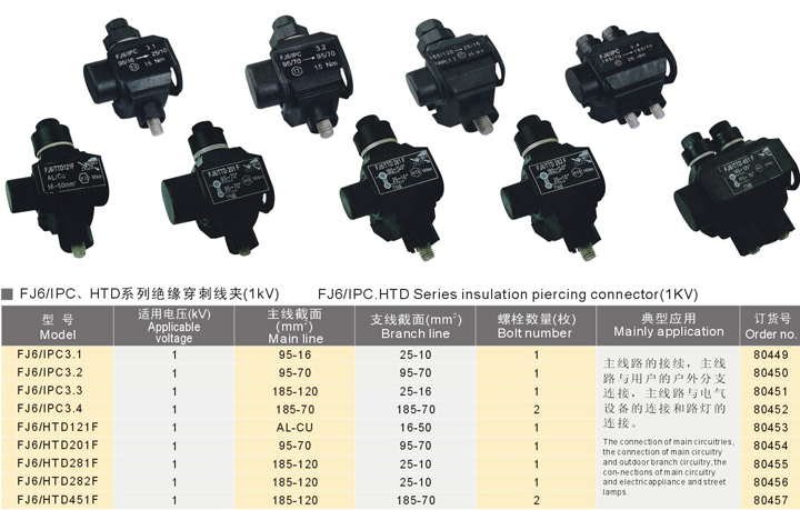 FJ6/IPC、HTD系列绝缘穿刺线夹(1kV)