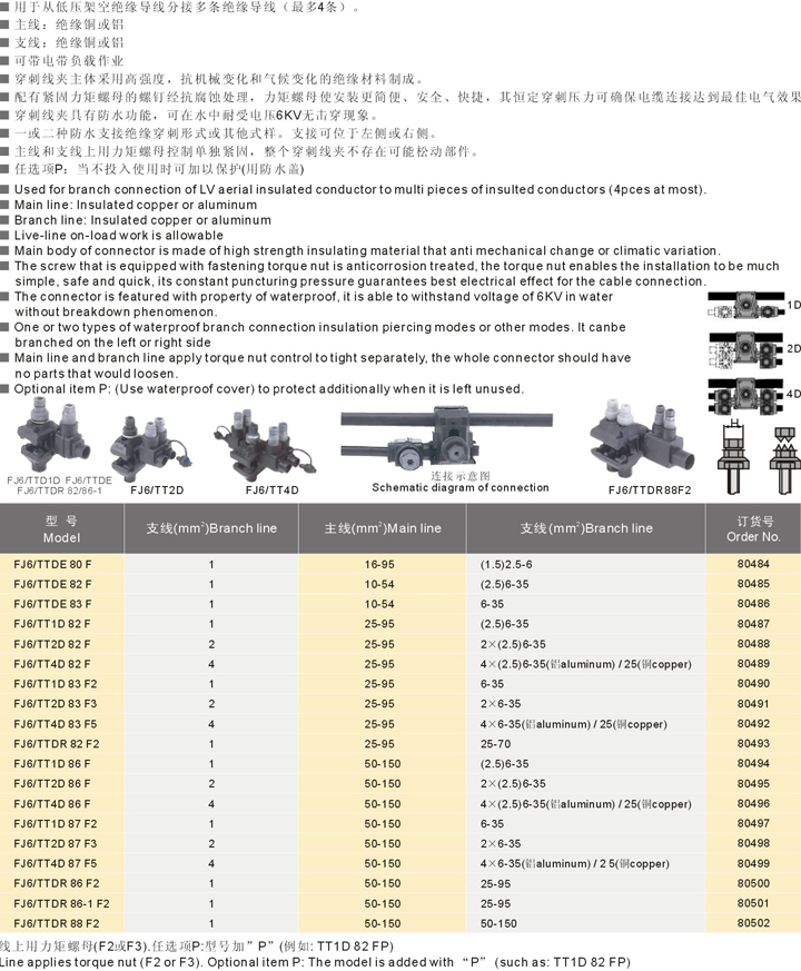 FJ6/TTD 80系列分步式多支接绝缘穿刺线夹