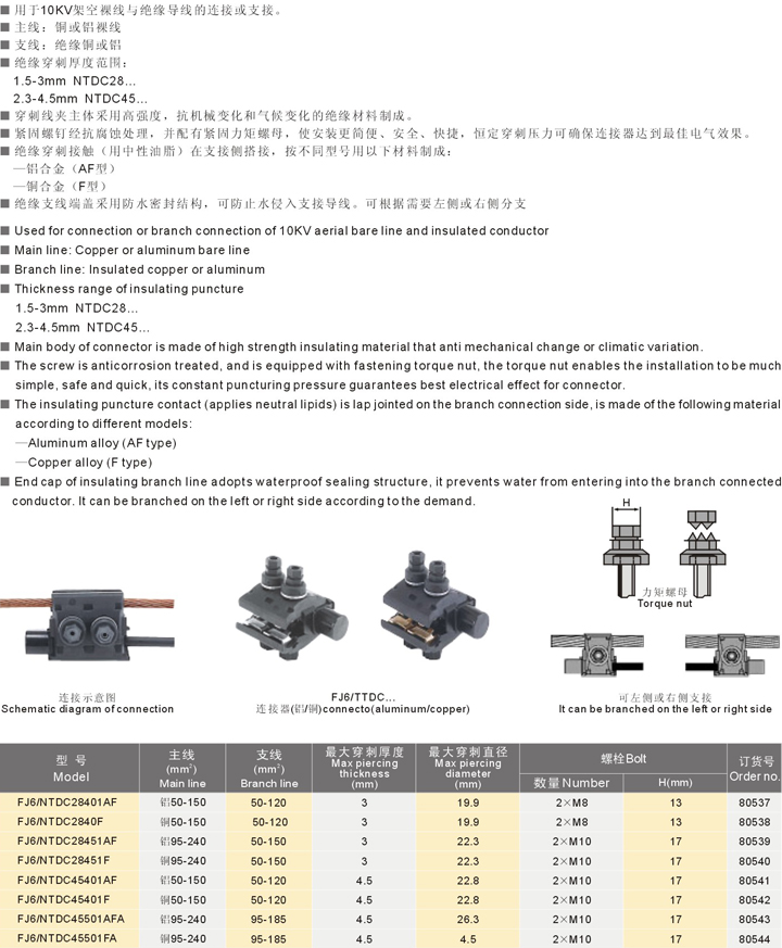 FJ6/TTDC系列绝缘穿刺线夹
