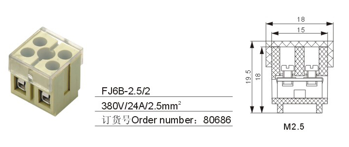 FJ6B-2.5/2底座封闭型接线端子排