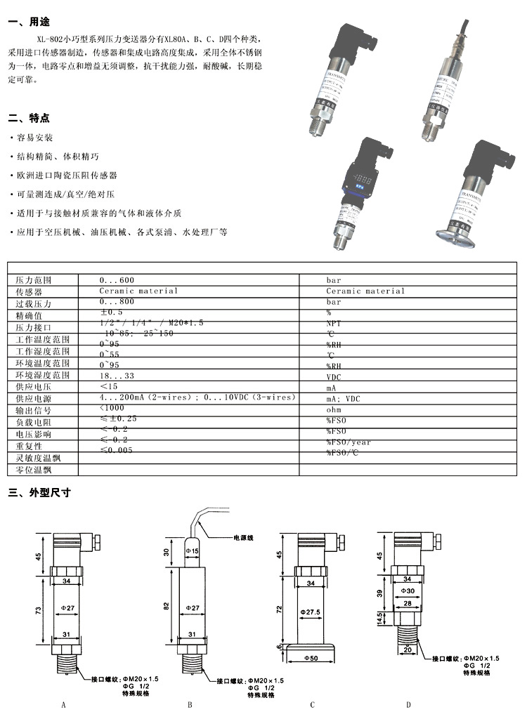 XL-808B小巧压阻式压力变送器