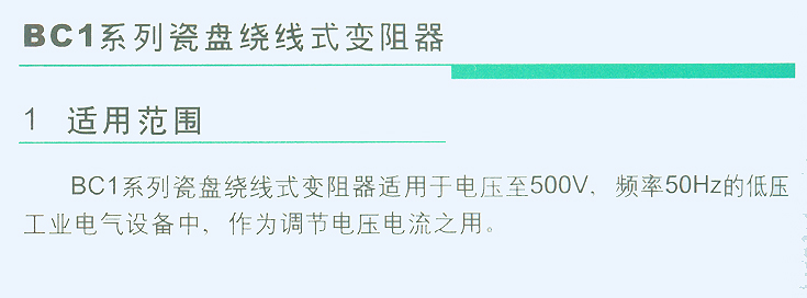 BC1系列瓷盘绕线式变阻器