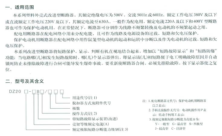DZ20B系列塑料外壳式断路器