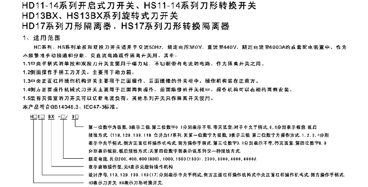 HD11B~17B、HS11B~17B、HD11FA、HD11F系列开启式刀开关