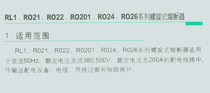 RL1、RO21、RO22、RO24、RO26系列螺旋式熔断器