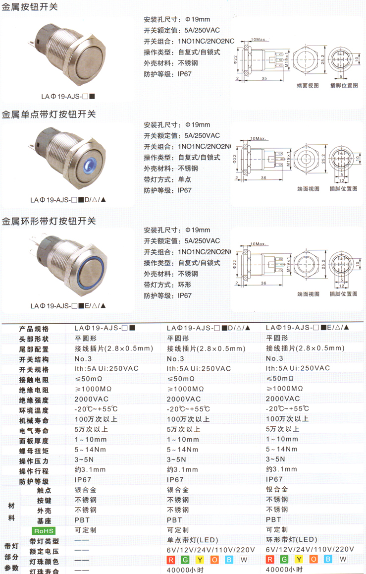 LAΦ19-AJS带灯按钮开关