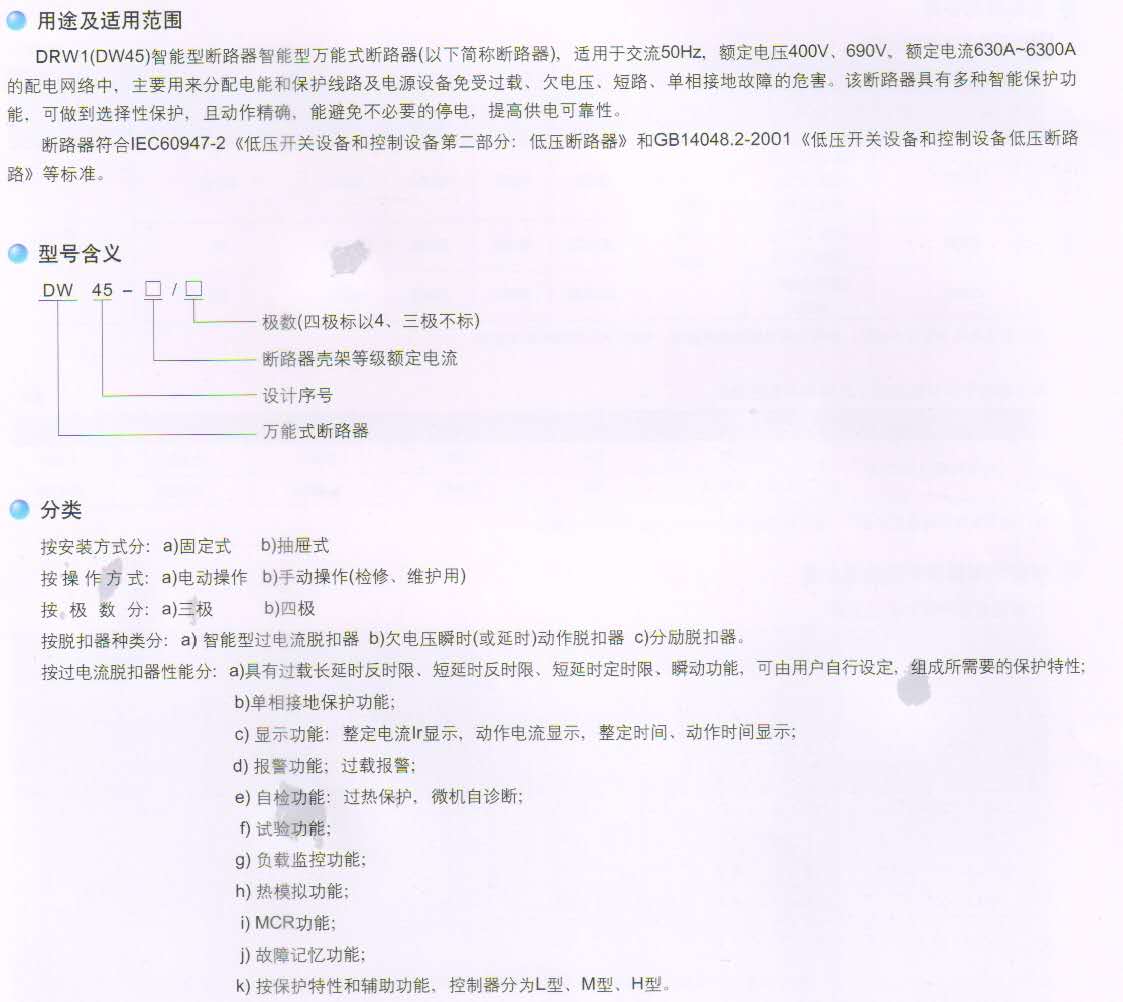 DRW1(DW45)-2000系列智能型断路器3P/4P 630A~6300A