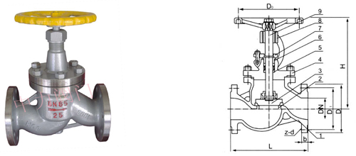 法兰截止阀主要尺寸: